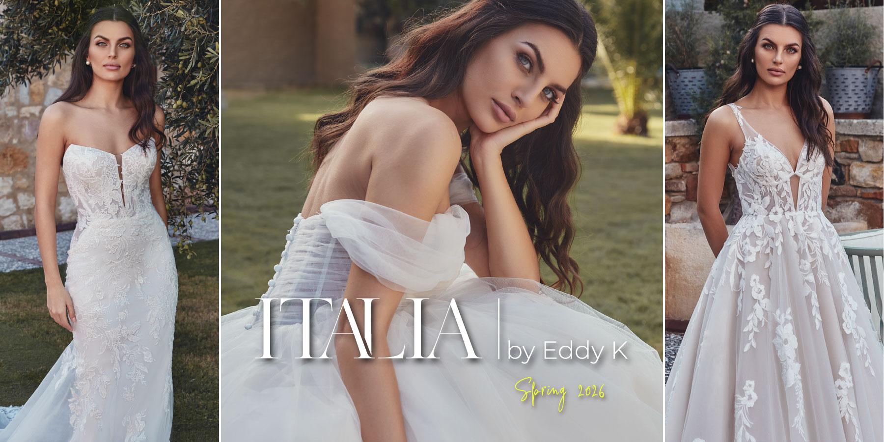 This collection is a celebration of Italian craftsmanship and timeless beauty. These gowns capture the essence of Italian romance and elegance, with classic fabrics and intricate lace silhouettes, the ITALIA Collection offers a gown for the bride who has the desire to feel feminine and beautiful on her wedding day.